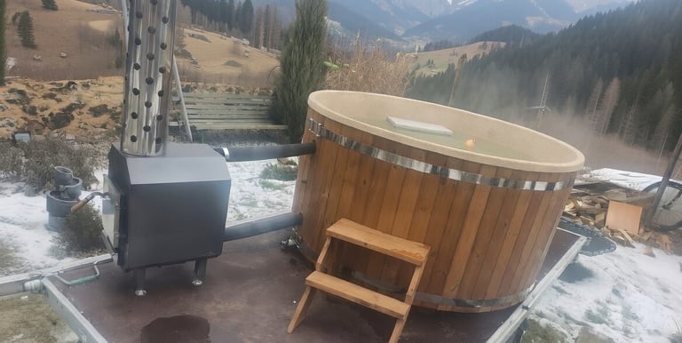 Pronajměte si koupací sud s kamny na dřevo pro víkend plný relaxu a zábavy.